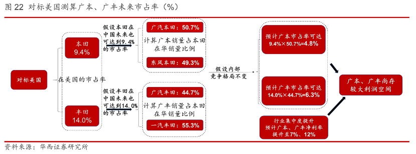 在复盘了日系汽车在全球各地区的扩张后,我们选择对标美国的市占率作为日系汽车在中国的增量测算。原因有二: