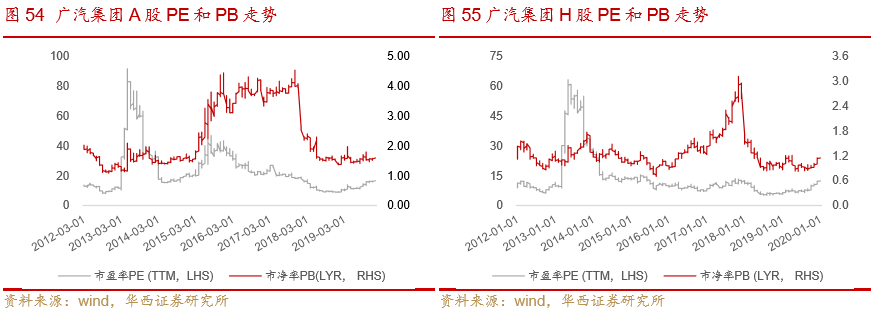 日系合资跑赢行业,自主品牌期待反转。从新车车型数和单车销量来看,根据2019年数据显示,广汽自主品牌推出新车型数位于行业中上游,而单车销量位于行业平均水平。但基于传祺GS4的换代以及模块化平台的开发对其竞争能力的提升,我们认为广汽自主的单车销量有望在2020年冲入行业上游;合资品牌中,广丰、广本均处于行业领先地位。由此,我们根据三要素模型推算,广汽集团整体质地优质。
