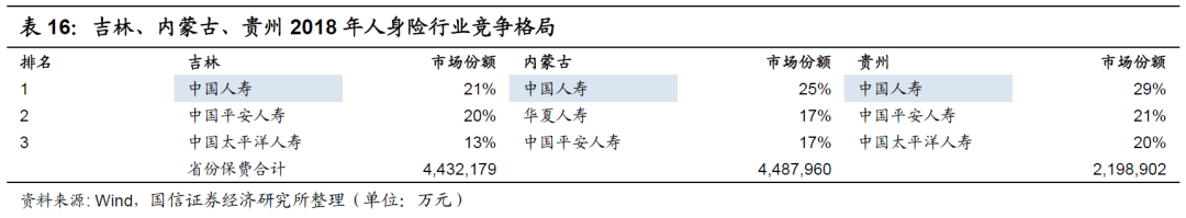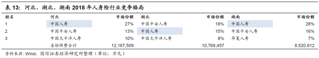 整体而言,中国人寿在大中型市场省份的地位基本保持领先地位,优势明显。