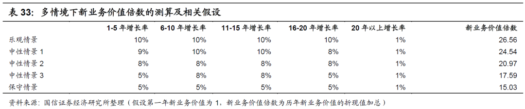 对于内含价值增长,我们假设两种情景: