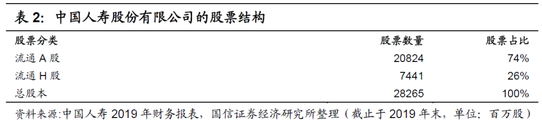 在2003年,中国人寿有限公司进行重组,成立中国人寿保险(集团)公司,独家发起中国人寿保险股份有限公司。同年12月,在财政部和集团公司的信用保证下,中国人寿股份有限公司成功登陆香港联交所,并以发行存托凭证(每单位ADR对应40股H股)的方式登陆纽约证交所,成为当年全球最大的IPO之一。时至今日,中国人寿的股票全部为流通股,总股本约283亿股,其中A股占比74%,H股占比26%。