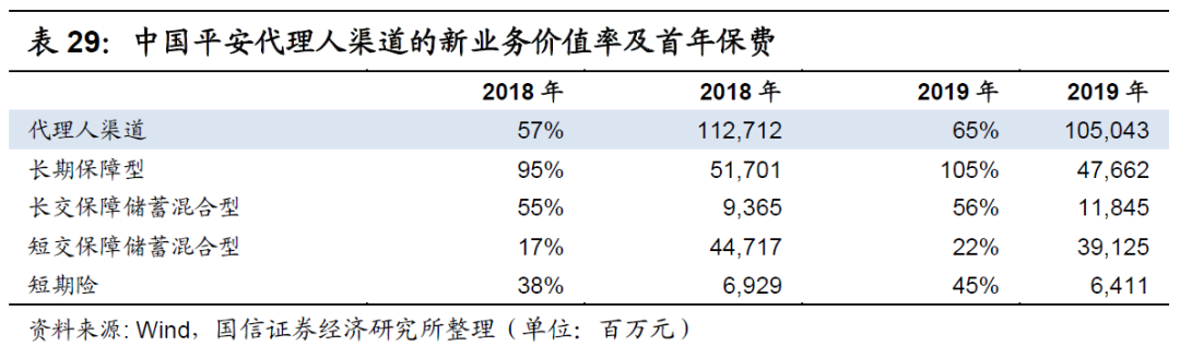 中国平安之所以能在代理人渠道取得远高于行业平均的新业务价值率,原因是其长期保障型业务的规模更大,且价值率更高,如下表所示。