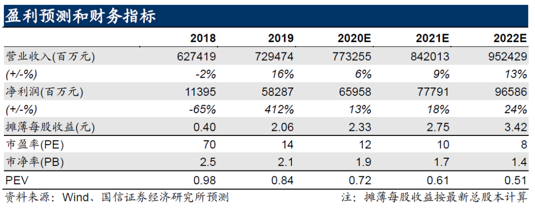 按照以上公式,在正常经济情境下,中国人寿的PEV倍数应当在1.4倍左右;在保守情境下,中国人寿的PEV倍数应当在1.0倍左右。