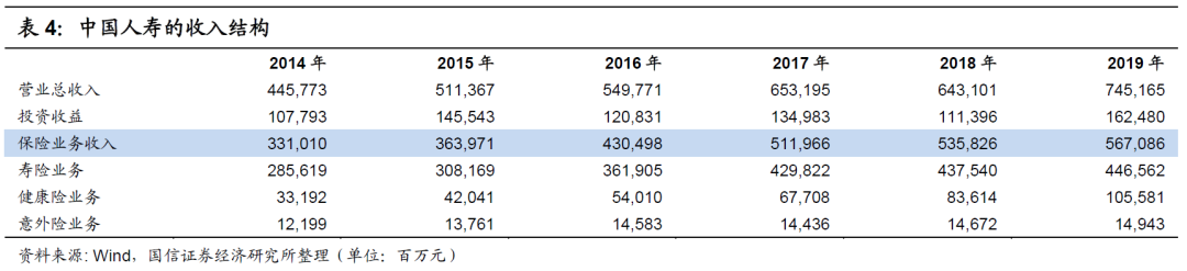 主营业务:中国人寿的主营业务是人身险业务,以寿险业务和健康险业务为主,其中健康险业务包括短期健康险,如下表所示。