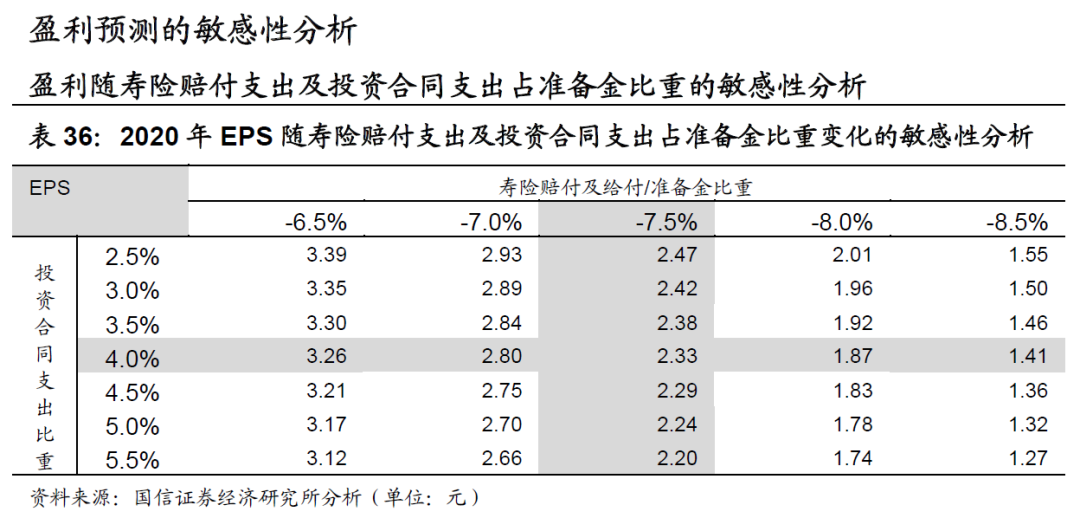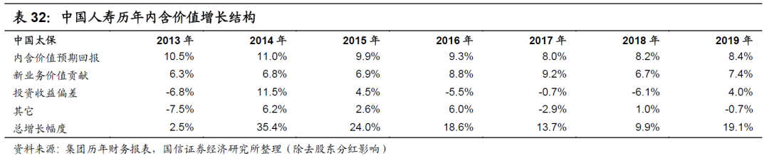(2)β:根据2019年年报数据,投资回报率下降50个基点,扣除要求成本后的有效业务价值为3774亿元,下降18%,那么我们保守假设如若投资回报率再下降50个基点,扣除要求成本后的有效业务价值下降36%。即投资回报率下降100个基点,扣除要求成本后的有效业务价值总下降幅度约为48%,则β为0.52。