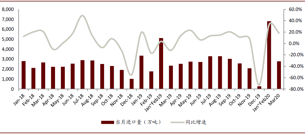 图表: 进口煤量及同比增速