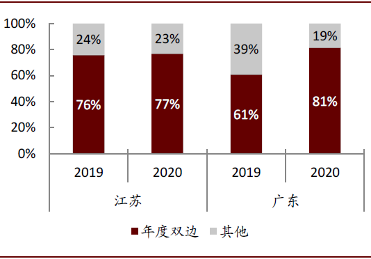 图表: 2019-2020年苏粤年度双边占全年市场电比例