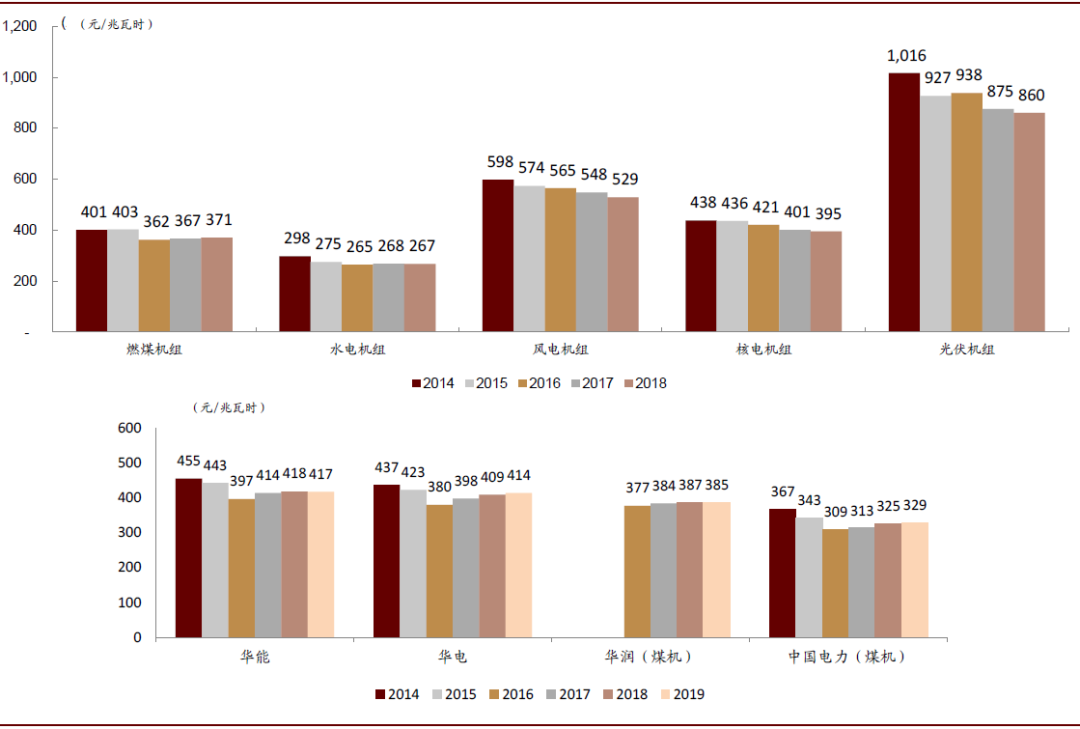 图表: 分电源电价走势以及主要火电企业电价走势(含税价)