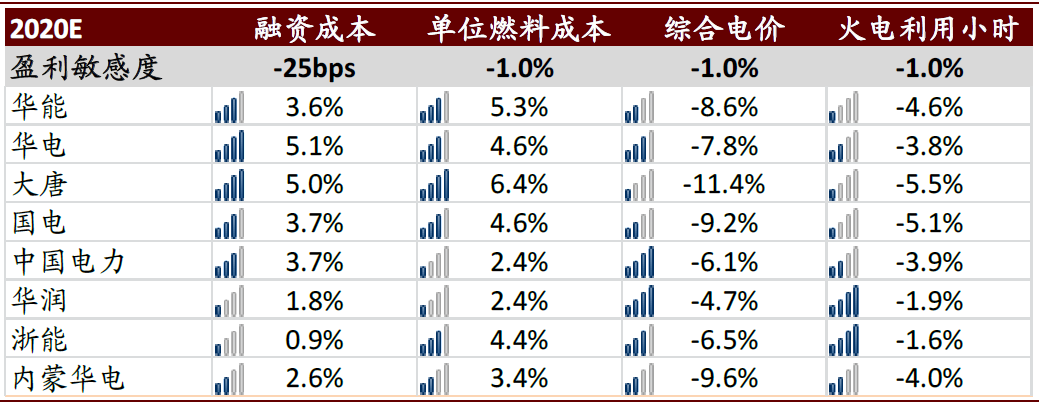 根据电力企业发布的季度数据,我们预计1Q20电量同比变化在-20%~+7%区间,带来一季度盈利或出现20-30%降幅,其中电量压力较小的华电国际或有望受益煤价及财务费用下行、电价提升,实现盈利稳健表现。二季度来看,我们认为电企有望录得标煤单价回落~15%,将充分弥补电量影响,看好整体行业盈利向上弹性同比+30-40%,优选煤价敏感度高、电量压力较小的标的。长期来看,我们认为若“十四五”不出现较大规模煤电新增量,煤电机组有望受益利用小时企稳回升和稳定的点火价差。优选现金流改善、利用小时压力小、投资控制较好的企业。
