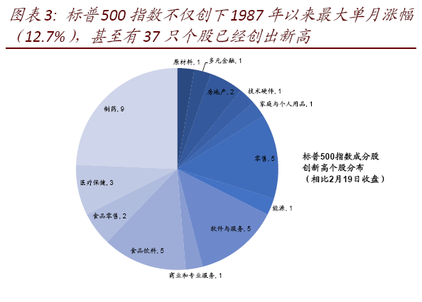 回顾来看,4月全球市场特别是美股的企稳反弹虽并非完全意料之外,但幅度却明显超出预期,标普500指数不仅创下1987年以来最大单月涨幅(12.7%),甚至有37只个股已收复失地再创新高。这一表现使本轮不仅成为历次美股下跌最快的熊市,也是反弹速度最快的之一。