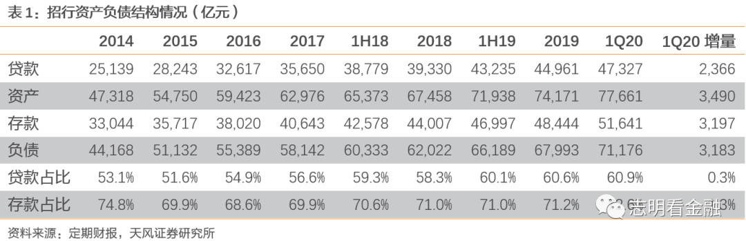 资产规模扩张提速。1Q20存款增速达16.6%,在存款大增的驱动下,资产规模达7.77万亿元,规模增速达14.3%,较19年末的10.0%明显上升。1Q20资产端贷款占比达60.9%,保持较高水平;负债端存款占比达72.6%,较年初提升1.3个百分点。