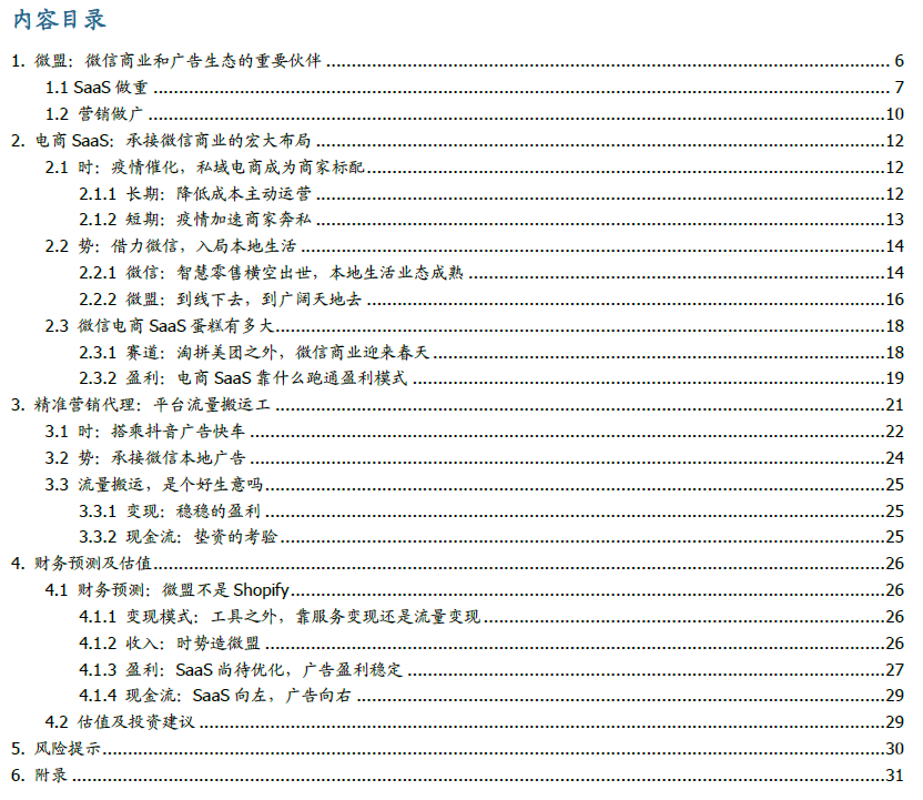 风险提示:SaaS付费商家数不及预期;广告需求不及预期;销售费用超预期;经营现金流净流出超预期。