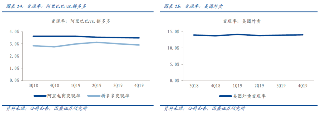 随着电商和线下餐饮零售的发展,淘宝、天猫、拼多多等电商平台,以及美团、饿了么等本地生活服务平台逐渐成为流量的垄断者。商家在天猫美团等平台,需要交纳相应的佣金支出、工具支出;如果希望获得更多流量还需交纳广告支出。截至2019Q4,电商商家在阿里巴巴和拼多多的平均费用率约3.5%和2.9%,当然,如果要获得推广流量则要付出更高广告投入;而餐饮零售商家2019Q4在美团外卖的平均费用率约14%。