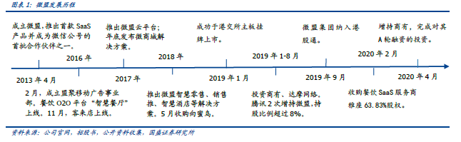 微盟成立于2013年4月;从成立伊始推出首款SaaS产品并成为微信公众号的首批合作伙伴之后,微盟作为微信重要的SaaS和广告服务商,其发展便与微信的商业和广告生态紧密联系在了一起。