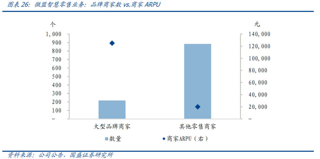 2)智慧零售和智慧餐饮大客的增加对整体ARPU带来的显著提升。