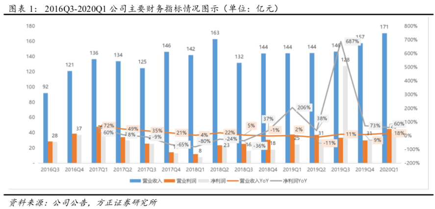 20Q1公司实现营业收入170.62亿元(YoY+18.3%、QoQ+8.4%),远超彭博一致预期的157.01亿元;实现营业利润44.86亿元(YoY+19.5%、QoQ+50.7%),远超彭博一致预期的35.56亿元;净利润39.51亿元(YoY+60.4%、QoQ+27.8%);实现归母净利润35.51亿元(YoY+29.9%、QoQ+16.3%),远超彭博一致预期的31.32亿元。