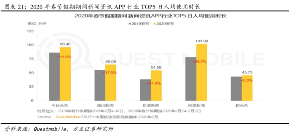 (3)网易传媒:网易传媒持续坚持用户至上,以新闻为根基,做内容消费升级的引领者。20Q1网易号深耕知识内容,全平台知识内容环比增长超200%。网易号内容创作者超百万,头部覆盖率保持98.4%。20Q1网易跟贴通过话题升级,大幅延长了UGC内容传播时效。网易跟贴看贴渗透率同比提升12.8%,日均发贴量同比提升17.3%,跟贴用户消费水平创历史新高。QuestMobile数据显示在春节期间,由于用户通过手机获取实时卫生事件和防护消息,带动网易新闻日均DAU同比增长18.6%,达2660万人,人均单日使用时长同比增长29.7%至101.9分钟,位居新闻资讯行业第一位。