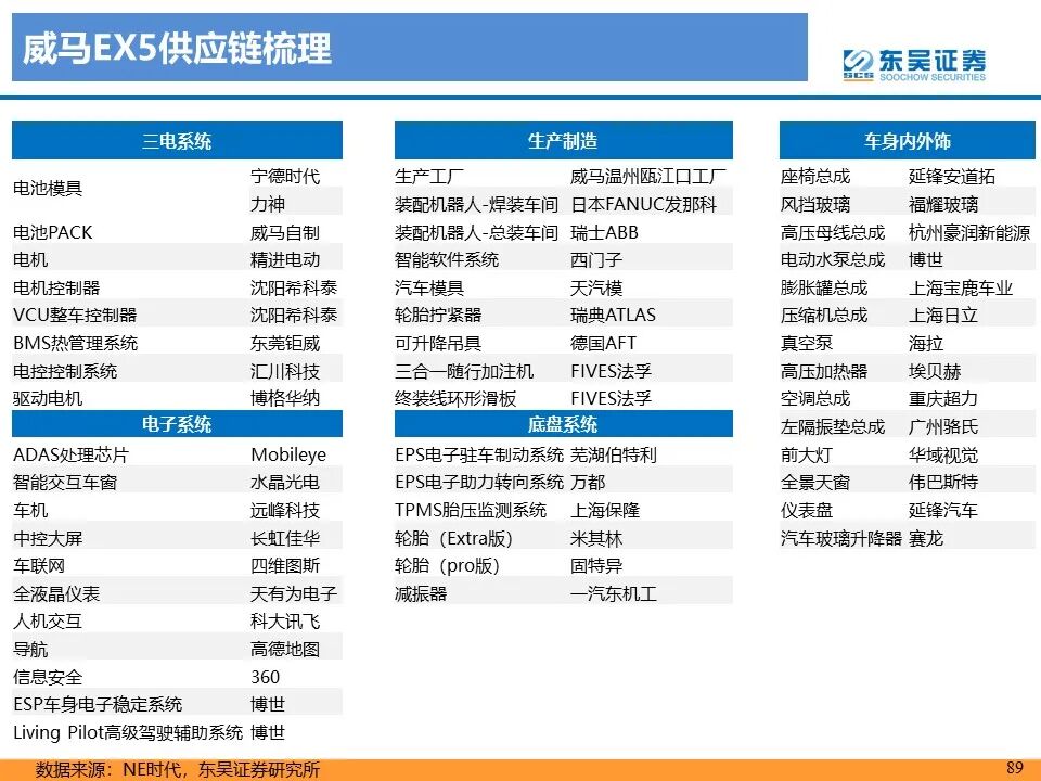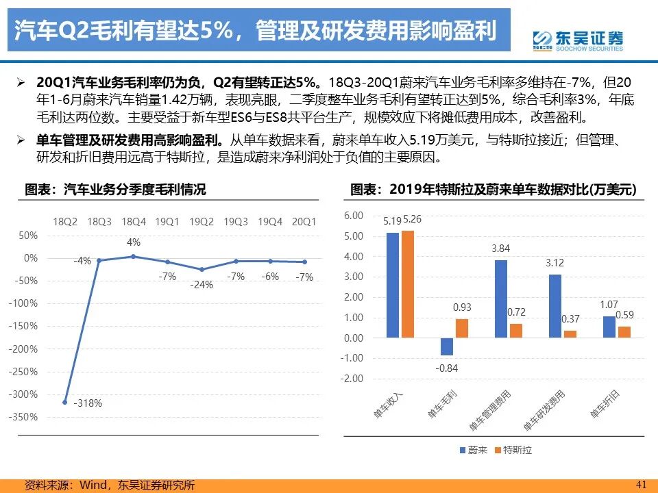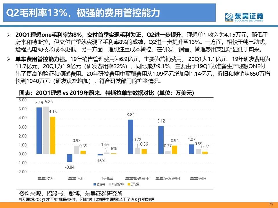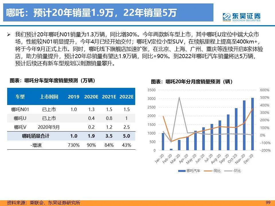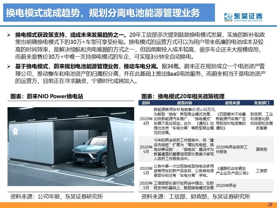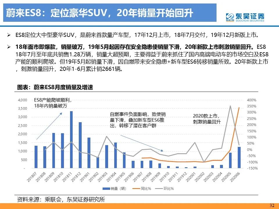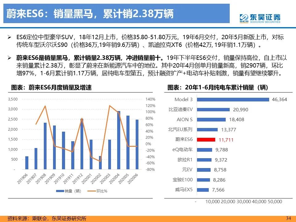 ·理想、威马、哪吒:理想主打增程式路线,解决电动车里程焦虑,年初首款车ONE上市,上半年销量冲至1万辆,新造车中仅次于蔚来,公司拥有极强的成本费用管控能力,Q2已实现现金流转正,美股ipo在即,后续融资能力强。但短期由于ONE种子用户订单交付完,直营店仅21家,且公司下一款车将于22年上市(仍为大型suv),因此我们认为理想未来1-2年销量难大幅增长。威马和哪吒造车思路更接近传统车,威马在10-20万区间性价比较高,哪吒定位10万以内电动车。