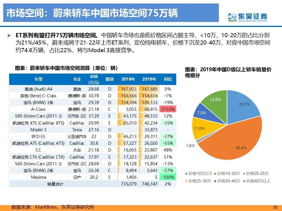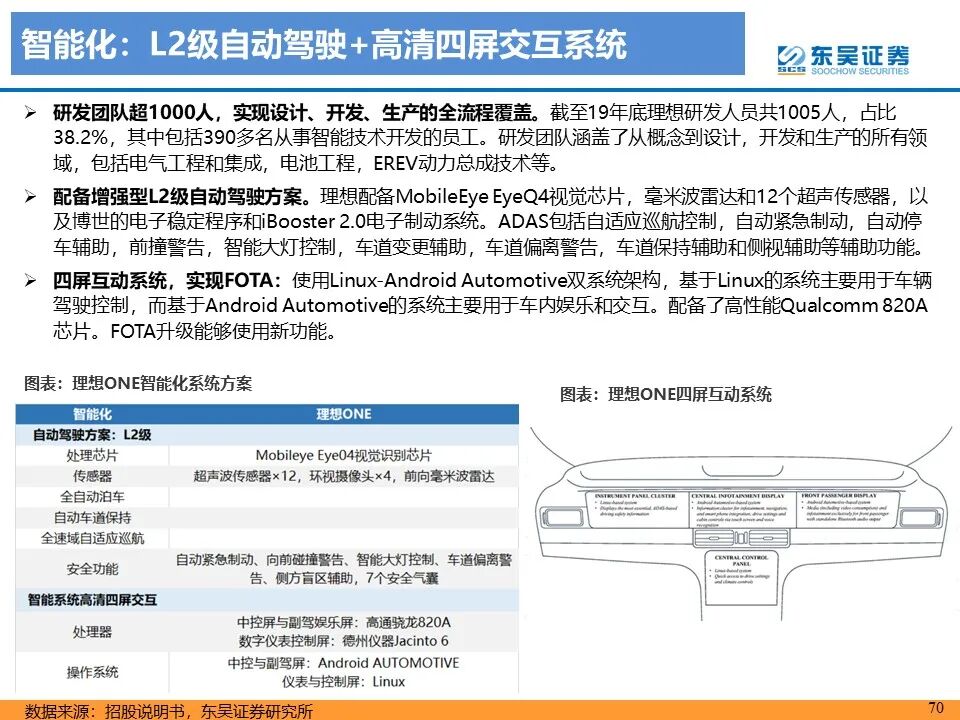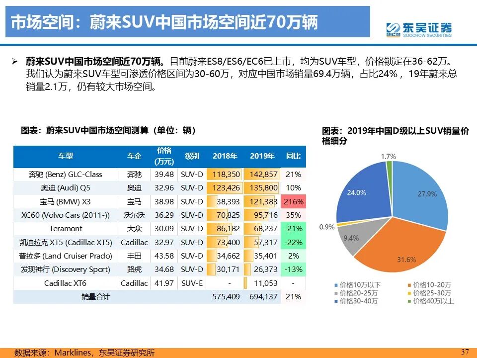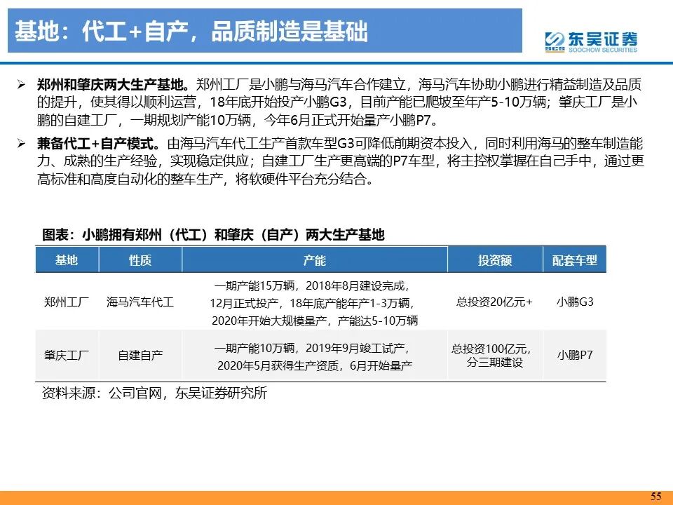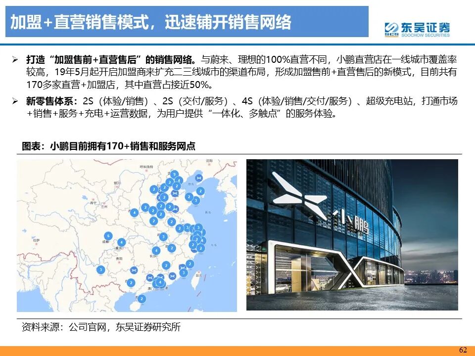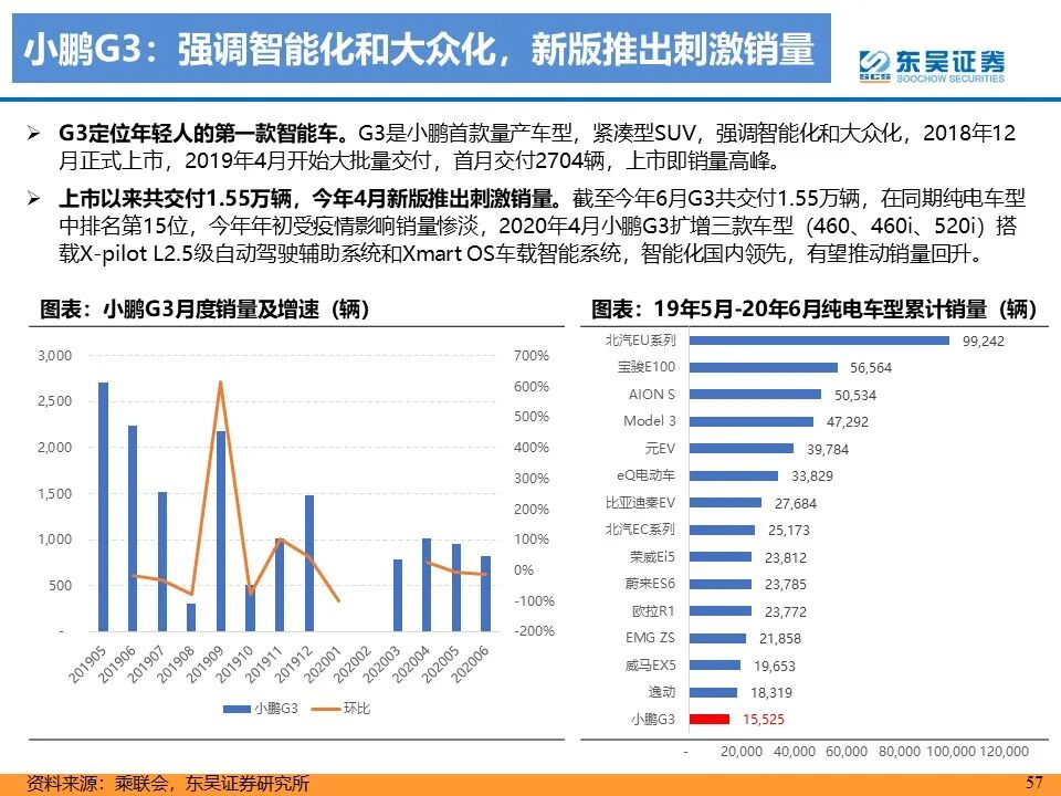 ·小鹏:定位性价比最高的智能化汽车,汽车电子电气架构最接近特斯拉,主打智能化,其P7智尊版本,可实现L3自动驾驶,搭载Xavier芯片,算力30tops,较同行的MobileyeQ4高出10倍以上;在智能交互与互联方面,由于背靠阿里(09988),能更快速导入相关小程序,创造智能化应用场景。今年旗舰车型P7上市,提升销量及口碑,后续每年将推一款新车型,且公司采用直营+加盟模式,4s店已超过170家,销量渠道广,成长空间大。
