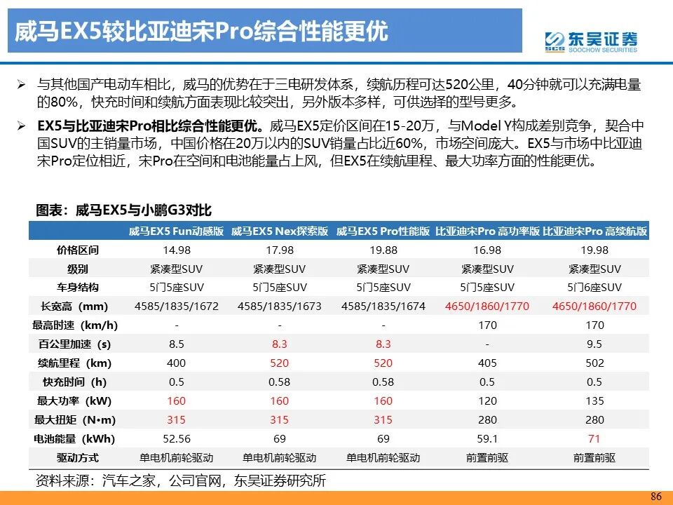 从多维度看,我们认为蔚来(NIO.US)与小鹏更具优势,而理想(LI.US)、威马和哪吒也在各自细分市场有一定竞争力: