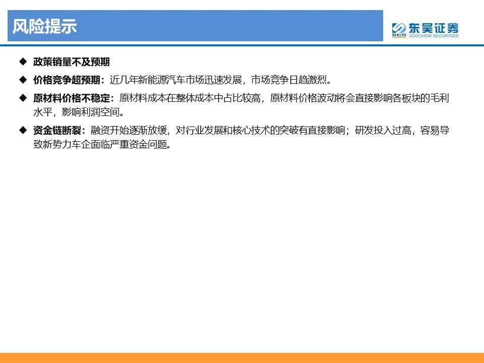 风险提示:政策及销量不及预期,竞争加剧盈利下滑,资金链断裂等。