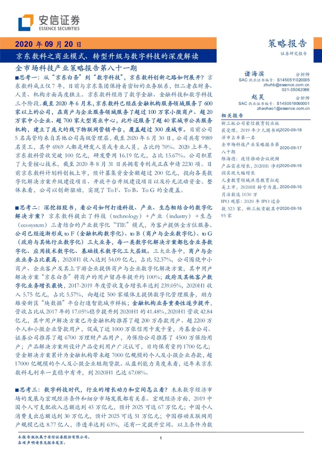 01 写在前面:上交所受理京东数科科创板上市请求,数字经济空间广阔