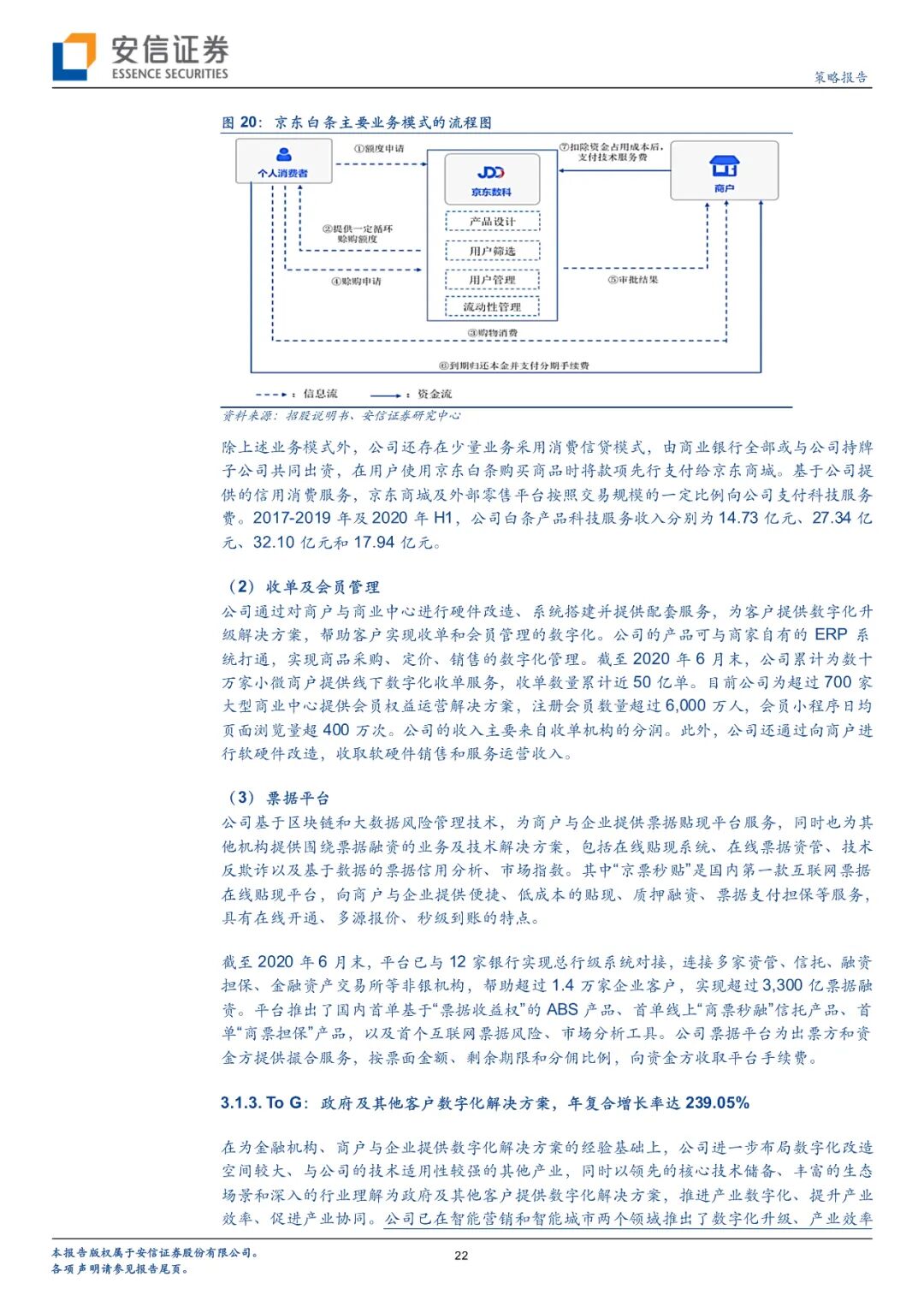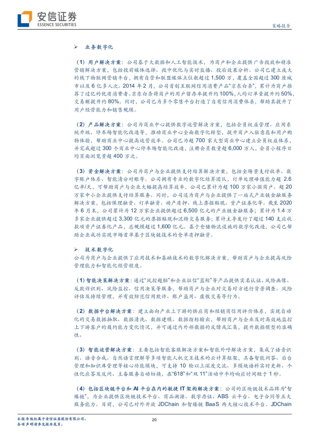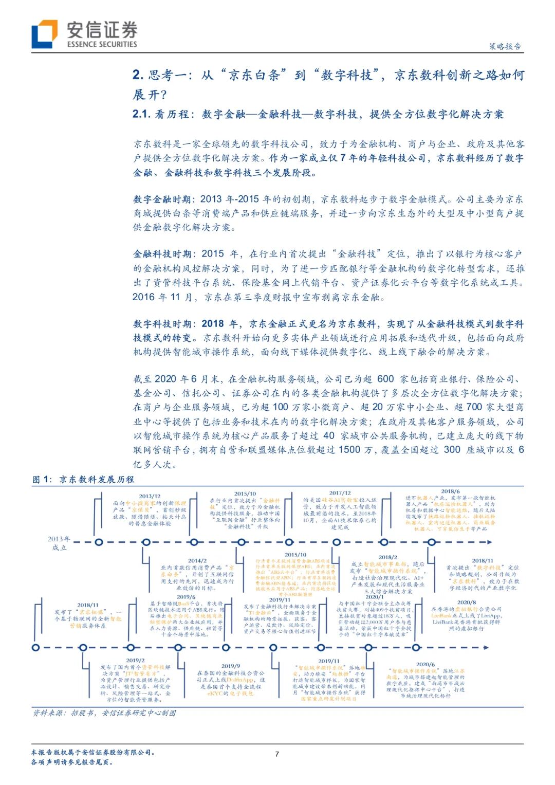 数字金融时期:2013年-2015年的初创期,京东数科起步于数字金融模式。公司主要为京东商城提供白条等消费端产品和供应链端服务,并进一步向京东生态外的大型及中小型商户提供金融数字化解决方案。