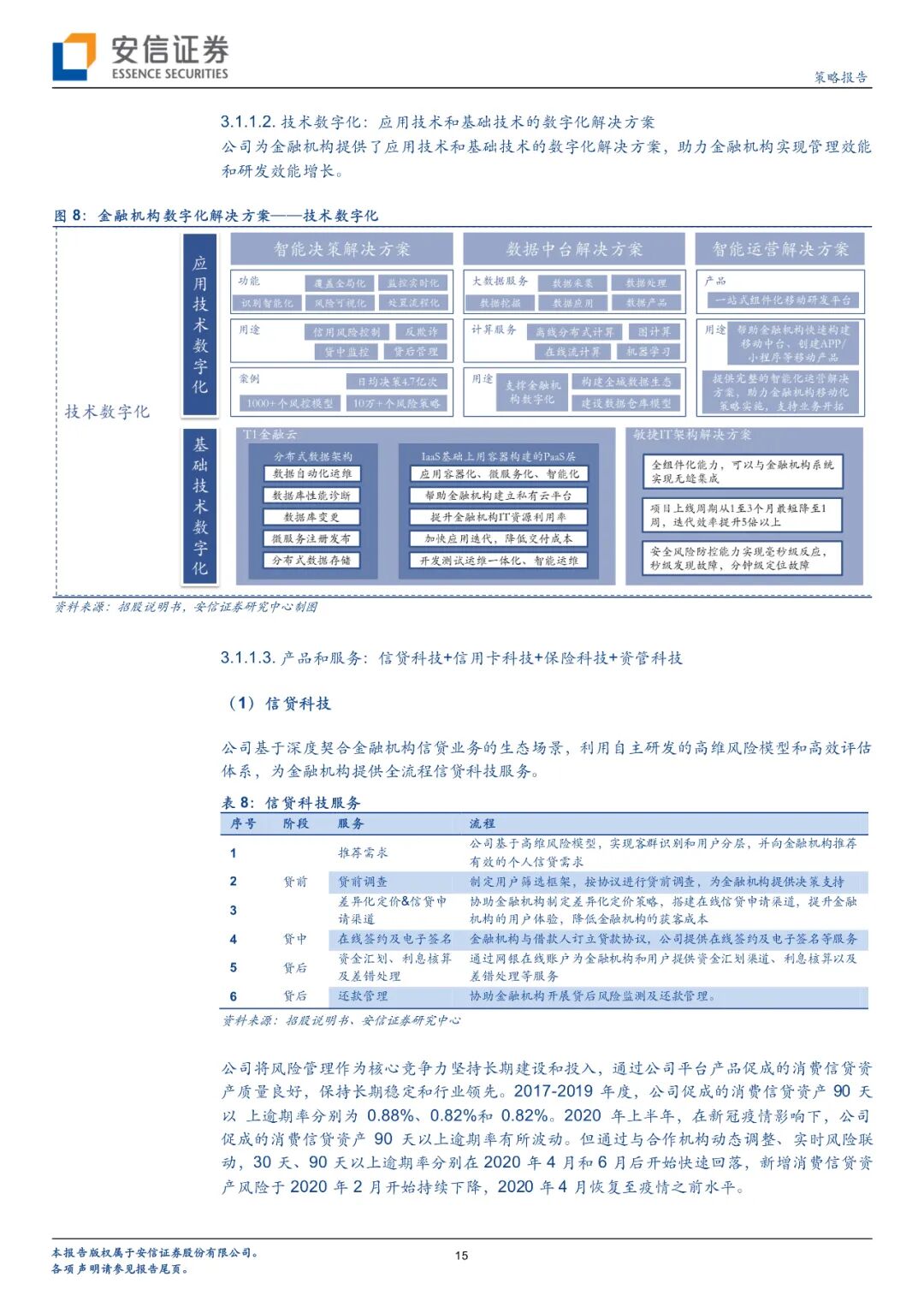 金融科技时期:2015年,在行业内首次提出“金融科技”定位,推出了以银行为核心客户的金融机构风控解决方案,同时,为了进一步匹配银行等金融机构的数字化转型需求,还推出了资管科技平台系统、保险基金网上代销平台、资产证券化云平台等数字化系统或工具。2016年11月,京东在第三季度财报中宣布剥离京东金融。