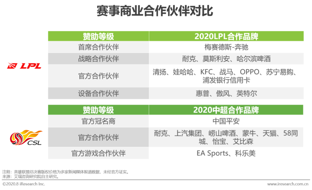 随着电竞赛事用户规模和社会影响力提升,电竞赛事的商业化价值越来越得到主流市场认可。对比国内头部传统体育赛事(以中超为例)和头部电竞赛事(以英雄联盟LPL为例),电竞赛事合作品牌在知名度与数量上已经和传统体育赛事相当,同时,随着顶尖电竞赛事的联盟化发展,电竞赛事的版权价值和整体商业价值也越来越向传统体育赛事靠拢。
