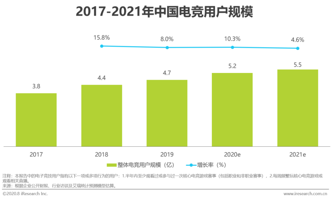 市场:2019年中国电竞市场规模超过1100亿元。未来,电竞商业化快速发展将进一步推动电竞整体市场规模增长,预计在2021年将超过1600亿元。