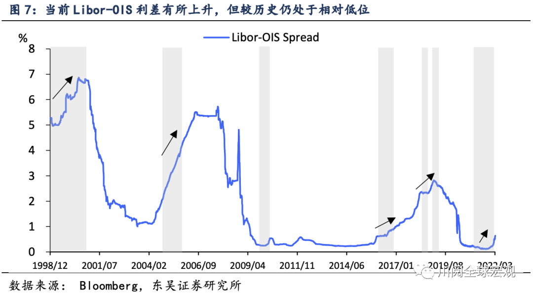 通过梳理1999年以来的6轮美元指数与大宗商品同涨行情,我们发现在美国经济走强甚至景气度高于全球经济时,美元指数表现较强。如遇地缘政治风险加剧、美联储加息等情况,美元指数表现则将更加强劲、Libor-OIS利差急剧扩大。在此基础上,如遇能源供给下滑,而全球经济景气度依然较高、需求旺盛,大宗商品将有良好表现并出现与美元共振上涨的行情。