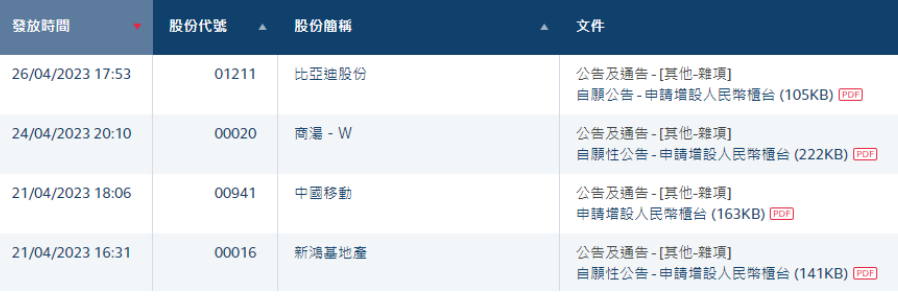 4月25日,港交所向市场参与者发出通告,将于2023年5月2日至2023年5月16日期间(测试系统主机维护日除外)安排非强制性且免费的端对端测试。为协助港交所参与者进行测试,在港币柜台之上将增设数个供测试用的人民币柜台。