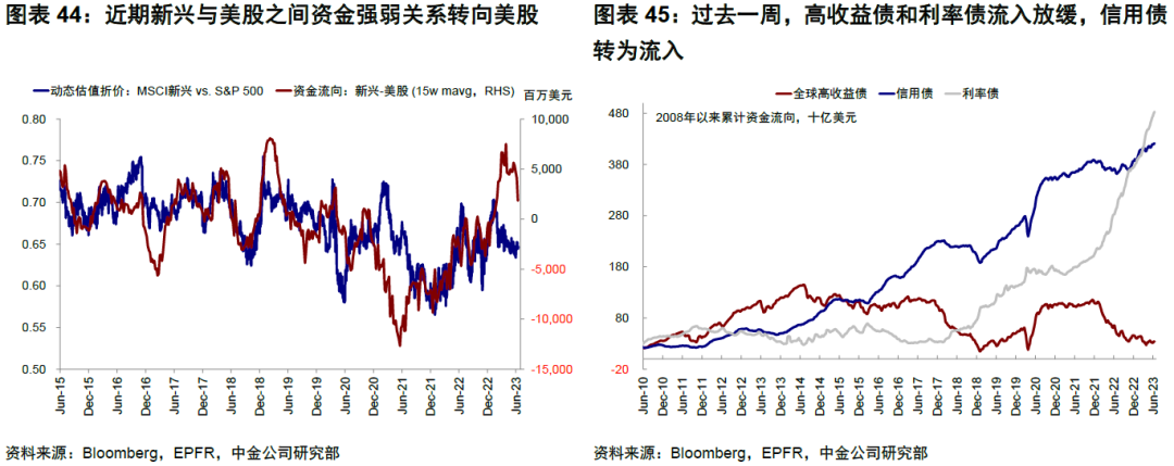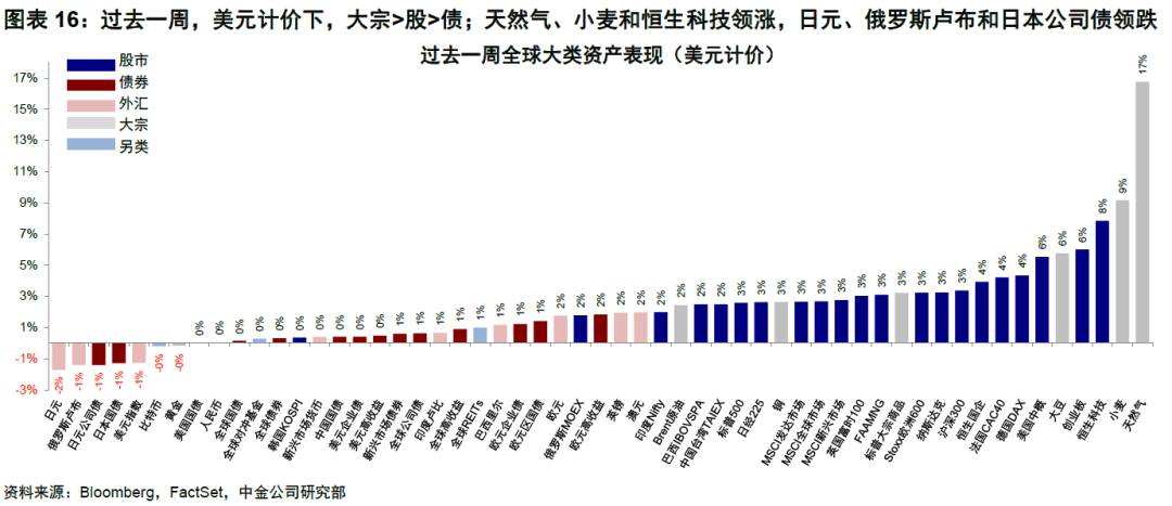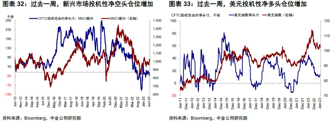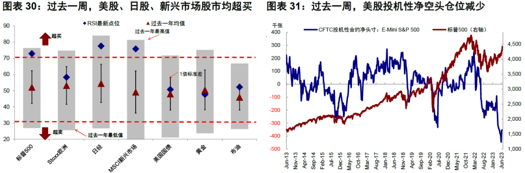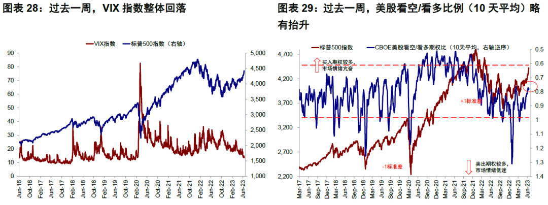 **资产表现:大宗>股>债;美股上涨,成长领先。随着周初公布的5月CPI数据显示整体通胀进一步降温,市场基本打消6月加息预期,美股继续延续此前上涨动能,成长风格领涨。周中6月FOMC会议召开,尽管美联储维持基准利率于5~5.25%,但相比会议前市场预期7月可能还有一次加息的预期,美联储更新的“点阵图”预计可能还会有两次加息,明显偏鹰,美股也因此一度明显回调,随后在鲍威尔略微缓和的新闻发布会发言提振下才再度收复失地。临近周末,美联储官员又再度放鹰[1],表示通胀仍然很高,尤其是核心通胀具有韧性,未来需要进一步加息。欧洲市场方面,本周欧央行再度加息25bp,符合市场预期,并表示未来可能继续加息。日本市场方面,日央行继续维持YCC政策不变,日元下跌,创去年11月以来新低。