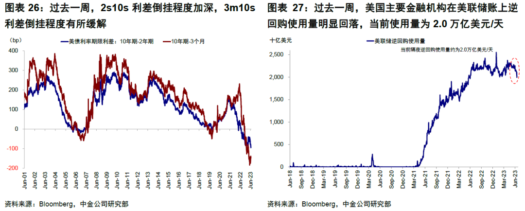 ** 流动性:在岸和离岸美元流动性均改善。过去一周,FRA-OIS利差基本持平于29bp,投资级和高收益债信用利差有所收窄;衡量离岸美元流动性的指标上,欧元、日元、英镑及瑞郎等交叉互换均收窄。美国主要金融机构在美联储账上逆回购使用量明显回落,当前使用量为2.0万亿美元/天。
